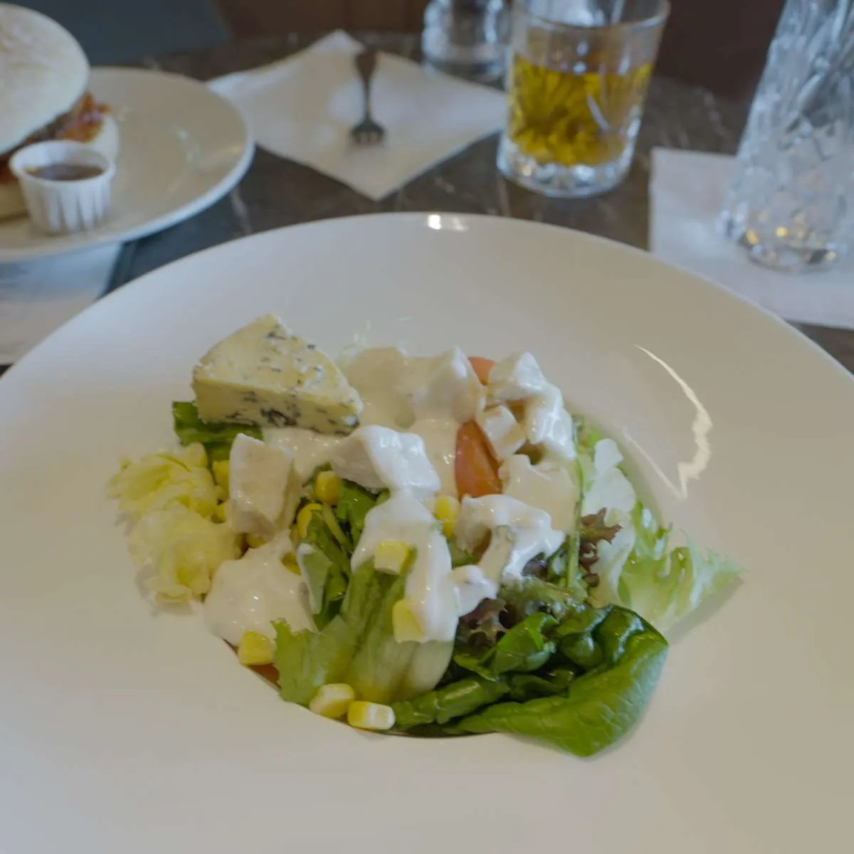 The chicken salad was definitely a better option. The chicken was not freshly cooked However, the cheese quality was good and I enjoyed something light for a late lunch. Well, if light includes lashings of dressing (I like that!).