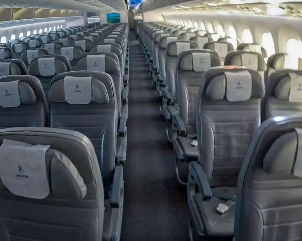 Economy layout is typical for the Dreamliner with a 3-3-3 configuration and 32″ of pitch for most seats.