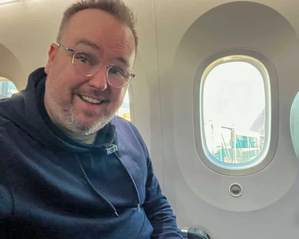 Cabin crew announced that an upgrade to Premium was available on board (the first time I’ve heard that when already seated) and for $250 US, seats were available. I checked with a friendly staff member if any window seats would be available and they informed me that once everyone was seated, they’d be certain of the number and position of seats. A few minutes later, they returned and had been able to find an upgraded Premium window seat (I like to film take-off for my YouTube reviews!).