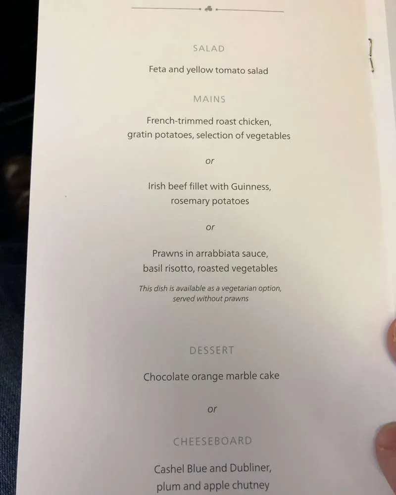 It’s not just because I’m Irish, but I’ve never had bad food service on board an Aer Lingus transatlantic flight, whether in an Economy or Business seat. On this flight, the first drinks service was prompt and food was quite a bit later (it’s a long flight, after all). However, staff were present in the cabin if you did require anything.